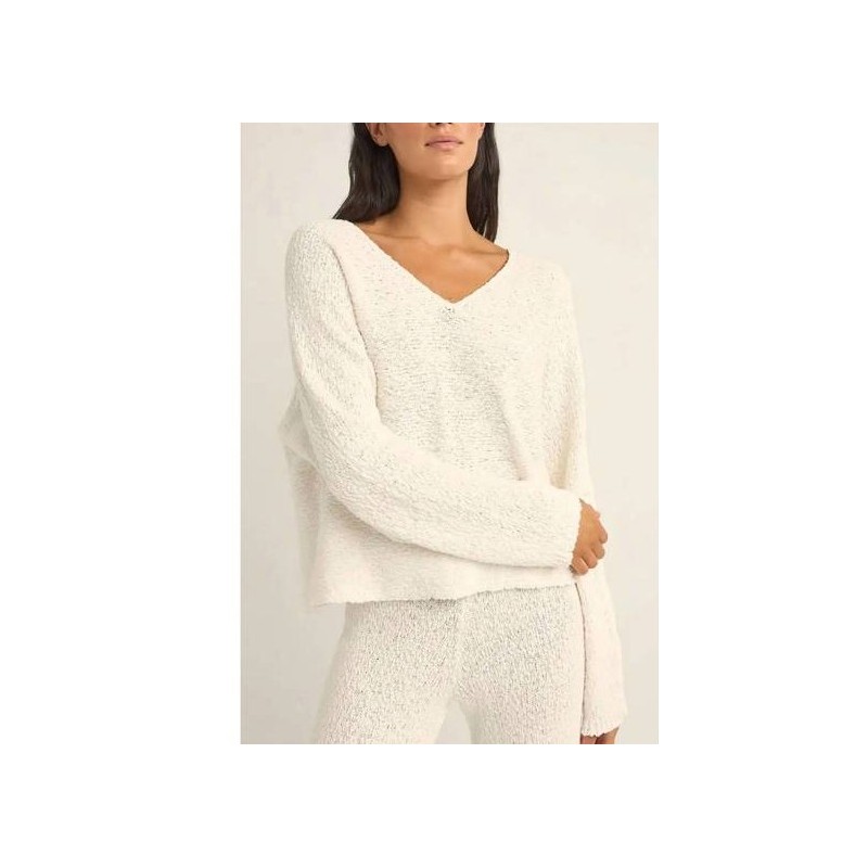 Pull oversize femme en coton avec encolure en V et coupe décontractée, parfait pour un look casual chic.